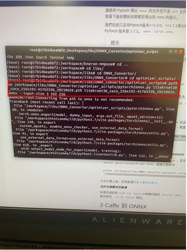 操作系統為ubuntu18.04,以下都是在toolchain最新的v0.18.0版本裡面操作,在使用litehrnet之前,有照著http://doc.kneron.com/docs/#model_training/regression/ 此篇官方教學進行使用前設定,但在跑litehrnet to onnx模型轉換的code時發生錯誤