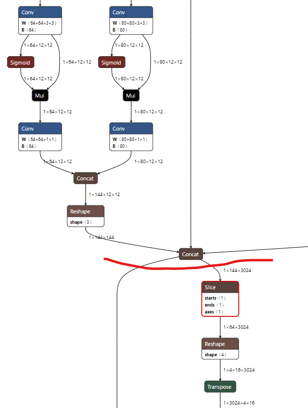 我們會建議您從onnx model剪掉Concat下面,Slice以下(包含Slice)的operators,將這些operators寫成postprocess function