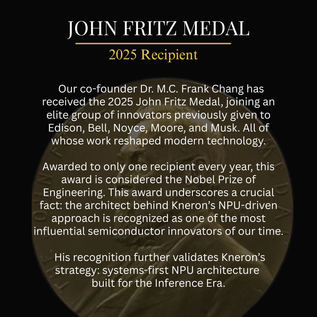 The John Fritz Medal is one of the oldest and most respected recognitions in engineering, established in 1902 to honor lifetime achievement and transformative contributions to science and industry. Dr. Chang’s inclusion among its recipients underscores the long-term value of his work and the growing importance of specialized AI processors in the global tech ecosystem.