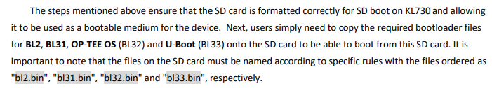 Yes, inside the SDK/01_BSP/01_Document/KL730_Development_Environment_User_Guide.pdf, in Section 8.5 SD Boot, it says that you will need the OP-TEE OS for your SD card.